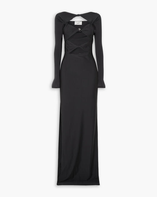 Asymmetrical Cut-Out Green Floral Midi Dress