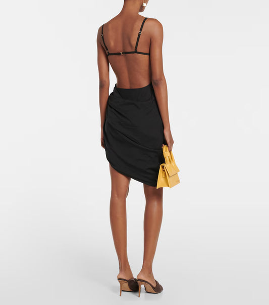 Minivestido Duna de mezcla de lana con ribete de grain de poudre y volantes